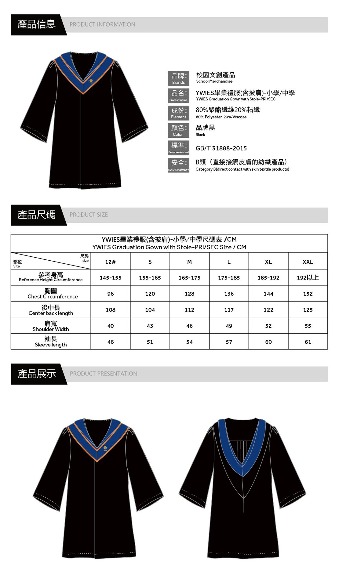 YWIES毕业礼服(含披肩)-小学/中学