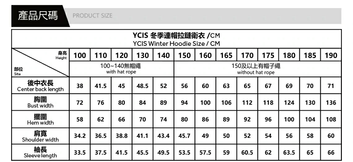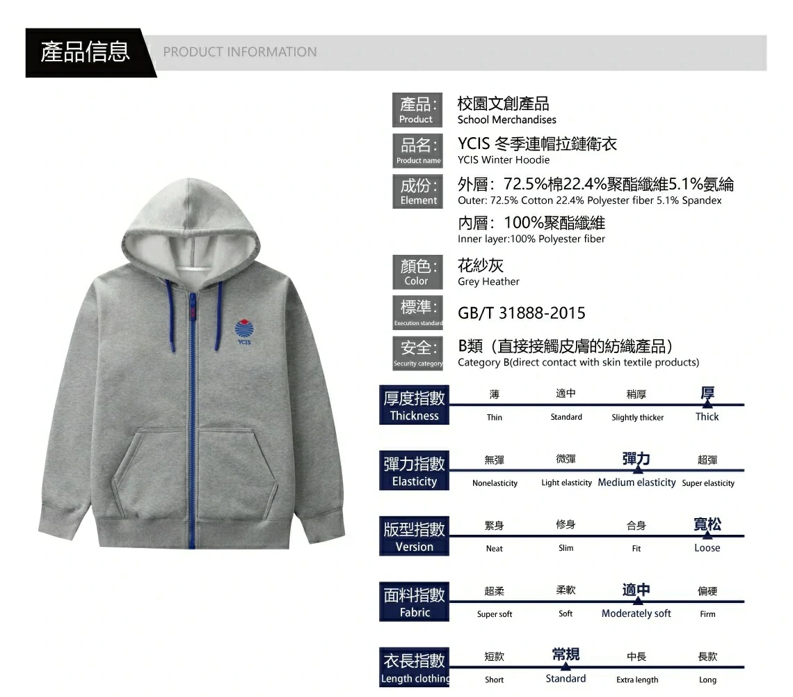 YCIS 冬季連帽拉鏈衛衣